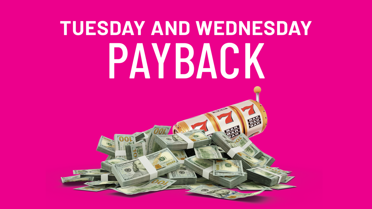 Return two weeks later and reap the rewards! Payback of up to $255 will load to your card in increments of $15 bonus play and is valid the Tuesday and Wednesday that falls two weeks after your qualifying visit.